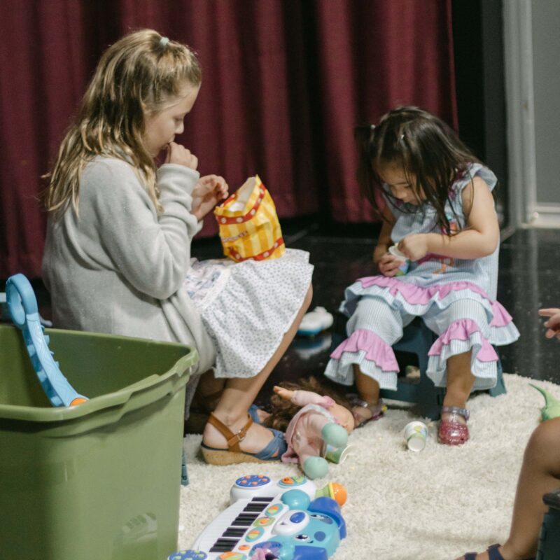 Each Sunday we offer childcare with background checked volunteers with snacks, Christian media, and plenty of toys! They meet in our kid's ministry area down the main hallway.